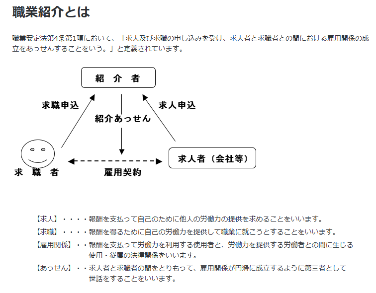 詳しくは、厚生労働省(石川県労働局)のサイトがわかりやすく説明してくれていましたので参考にして頂きたいのですが、厚生労働省では『職業紹介』という求職者側の視点になっている点に、実はエージェントだけでなく、求人企業側である皆さんの採用活動においても大切な視点というか、重要なヒントがあるのですが、それはまた別の話となるので機会があれば改めて。